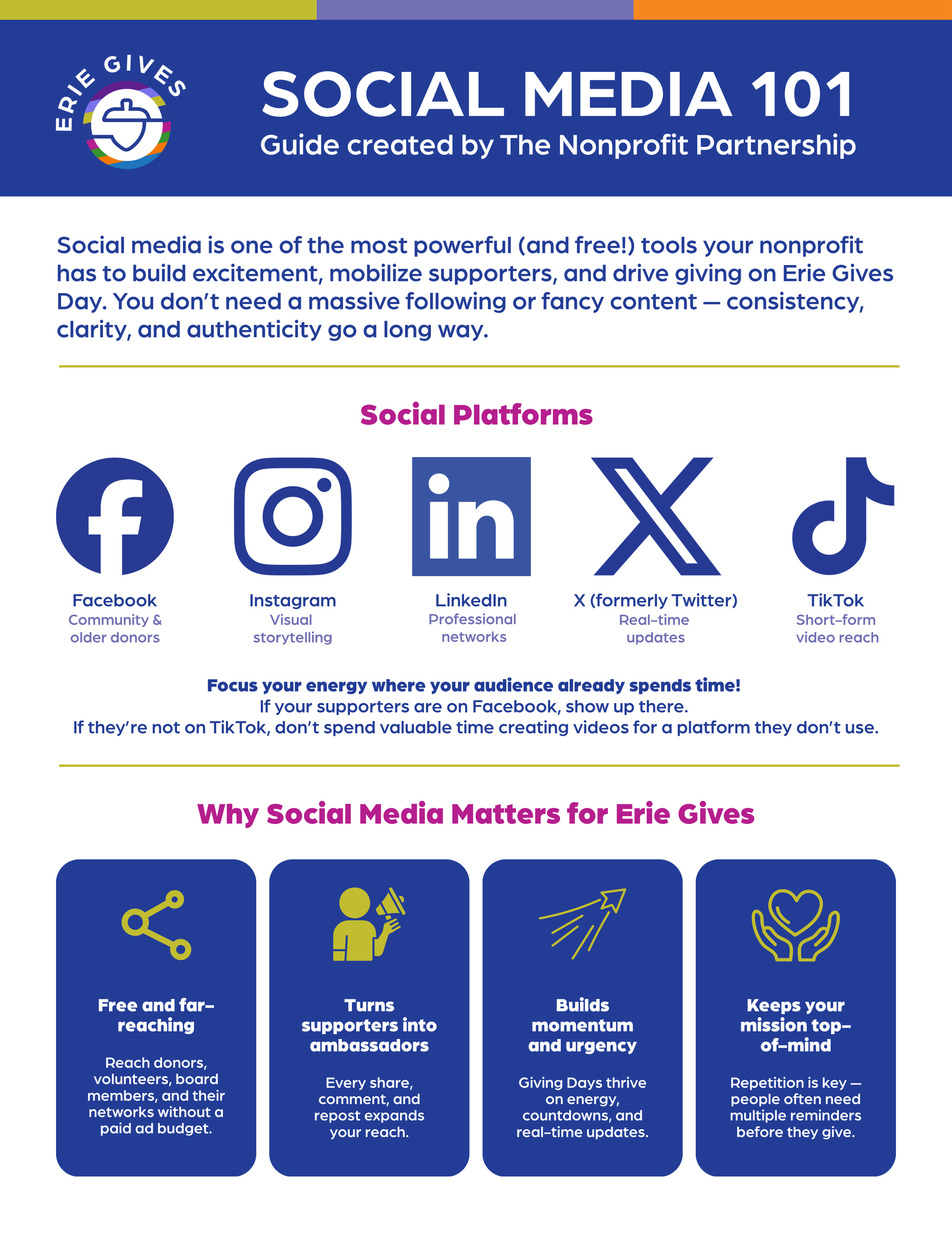 The Nonprofit Partnership is proud to partner with ECF and Erie Gives to support participating nonprofits by providing practical tools, education, and marketing resources templates to strengthen your campaign and increase your impact.
